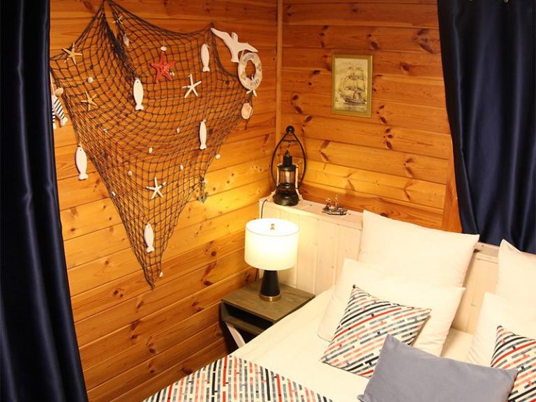 - 1 king size bed (180 cm) и 2 folding chair (90x180 cm)