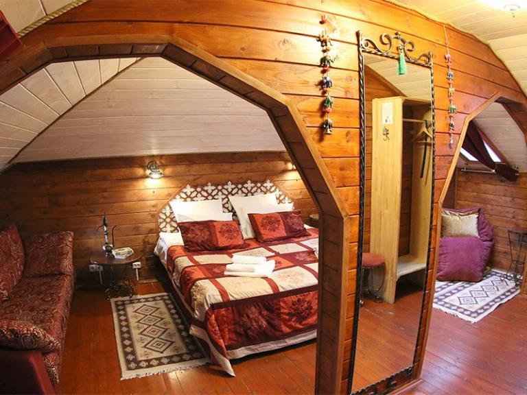 A cozy place with the atmosphere of old Russian charm and modern amenities. Unique rooms in different styles and Russian cuisine dishes prepared according to traditional recipes. The hotel in the center of Plyos, near the main attractions, is suitable for family vacations and exploring the cultural heritage of the city. Here you can relax by the fireplace, enjoy views of the Volga from the balcony, and savor the homey comfort and convenience.